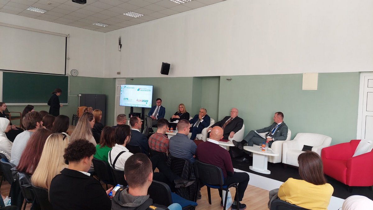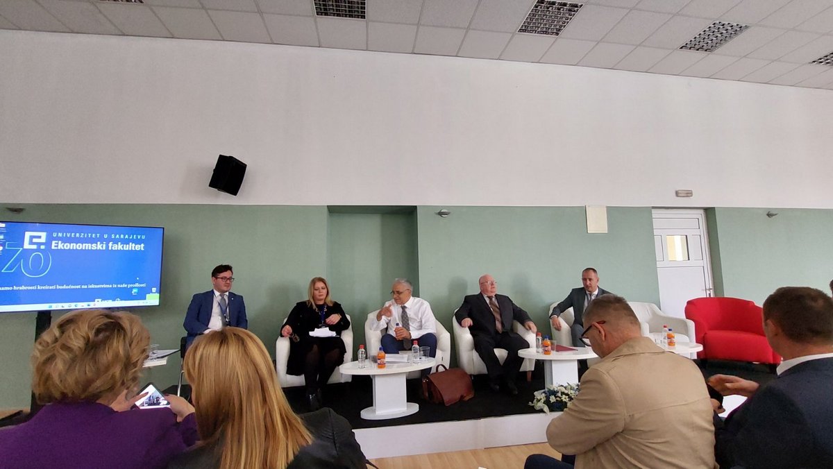 | Милуновић као панелиста на Међународној конференцији Економског факултета у Сарајеву, 14. октобар 2022. |