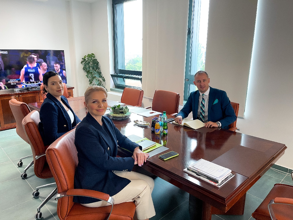 | Милуновић разговарао са в. д. директора „Аеродрома Републике Српске“ Наталијом Тривић, 19. мај 2023. |
